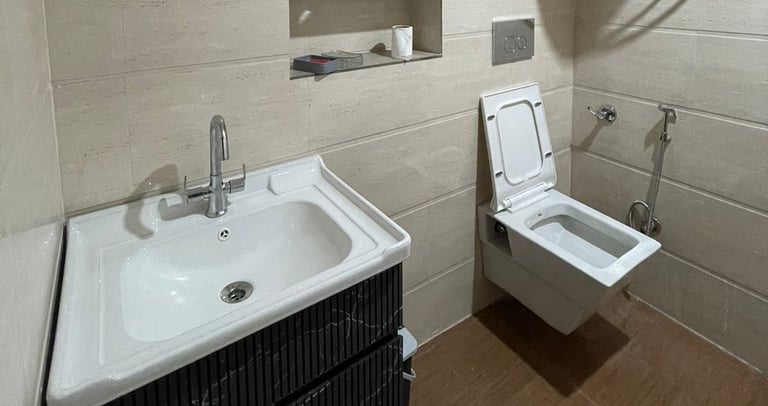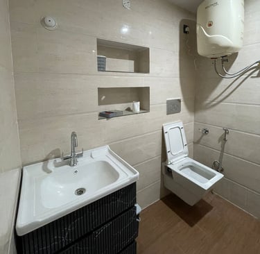 Clean, contemporary bathrooms equipped with hot water geysers, premium fixtures, and thoughtful amenities ensure your comfort and convenience throughout your stay.