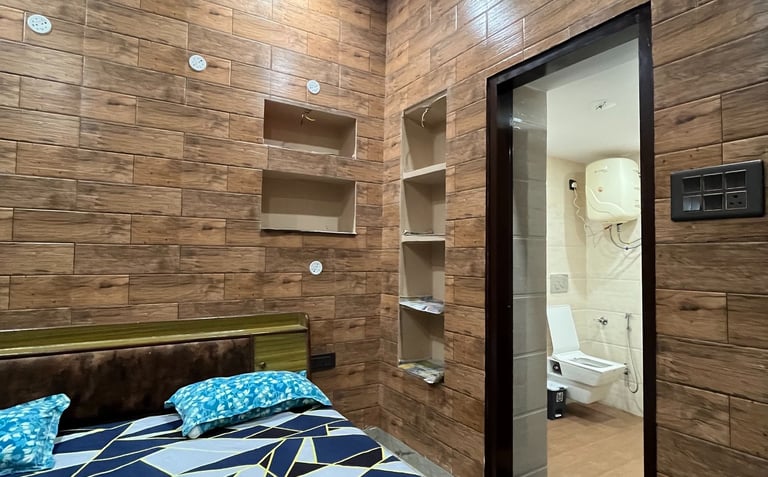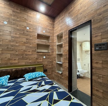 Experience the perfect blend of traditional wooden aesthetics and contemporary amenities – your private sanctuary with ensuite facilities, climate control, and built-in storage after exploring Haridwar's sacred sites.